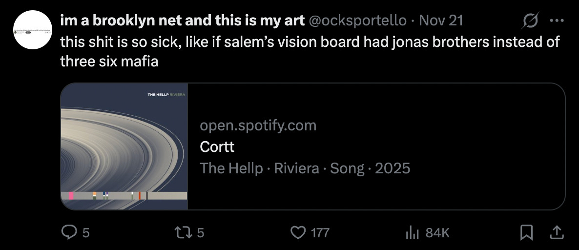 Love December…we all just sort of agree that it doesn’t exist and get to look back at the year instead. Have come around on lists—they’re fun, help you find something new, argue. It’s good. Still short on gift guides though—no idea how you guys buy that much stuff or even know about what’s out there available for purchase. Anyway, Lane Kiffin is an LSU Tiger, Danny Wolf has crossed up Giannis Antetokounmpo in a real NBA game, and it’s time again to take stock of the year’s best music (no Cameron Winter, sorry bud, should’ve not dropped during Mickey Mouse December), movies, books (kind of?), and Brooklyn Nets draft picks. Blurbs when compelled. Hope you all find something new to enjoy or have you priors confirmed in a way that feels good.